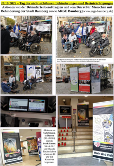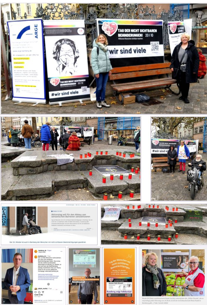 Für den „Tag der nicht sichtbaren Beeinträchtigungen“ am 20. Oktober 2025 organisierten Nicole Orf, die Behindertenbeauftragte der Stadt Bamberg, und der „Beirat für Menschen mit Behinderung“ sowie die ARGE Bamberg stille Aktionen im Stadt:Raum und am Gabelmann.
