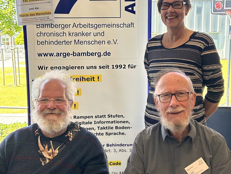 Vorsitzender Volker Hoffmann mit den Stellvertretern Claudia Ramer und Markus Loch vom „Beirat für Menschen mit Behinderung der Stadt Bamberg“ präsentierten am 10. Mai 2025 Informationen über die 20-jährige Tätigkeit für Teilhabe und Inklusion.